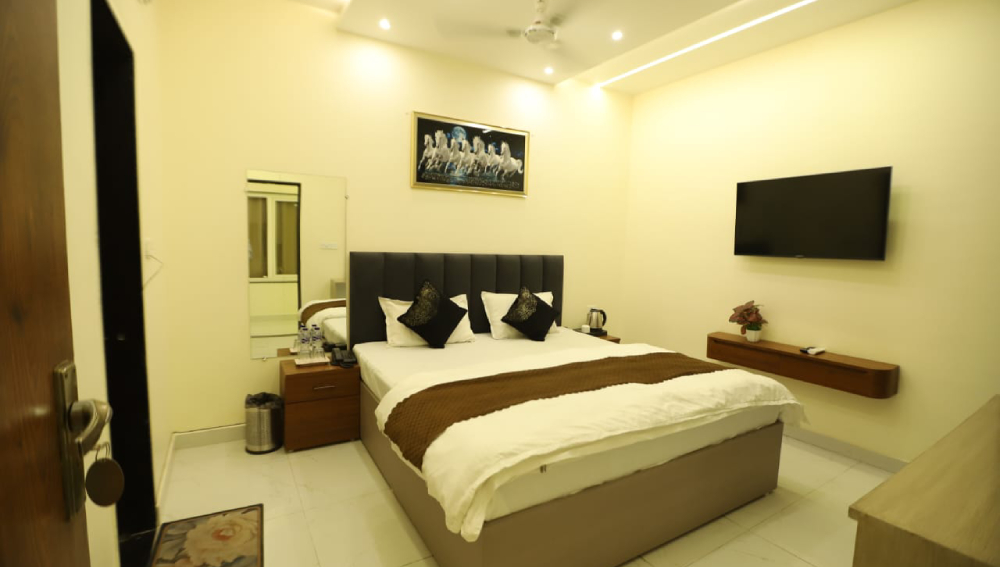 Our Deluxe Room offers the perfect blend of style and comfort, featuring cozy interiors and modern facilities. Designed for relaxation, it provides a peaceful ambiance with elegant décor. Ideal for both leisure and business travelers, it ensures a memorable stay.